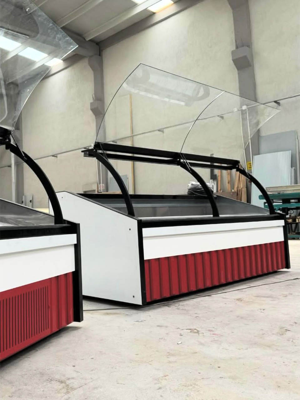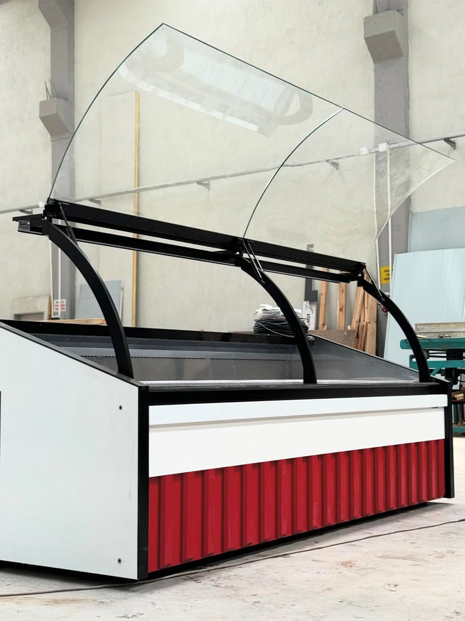 Bombe Kol Sistemleri, bombeli cam kullanılan tezgah tipi soğutma dolapları için özel olarak tasarlanmıştır. Özellikle kasap ve şarküteri vitrinlerinde estetik sunumu ön plana çıkaran bu sistem, aynı zamanda kullanıcı dostu açma-kapama mekanizmasıyla fark yaratır.