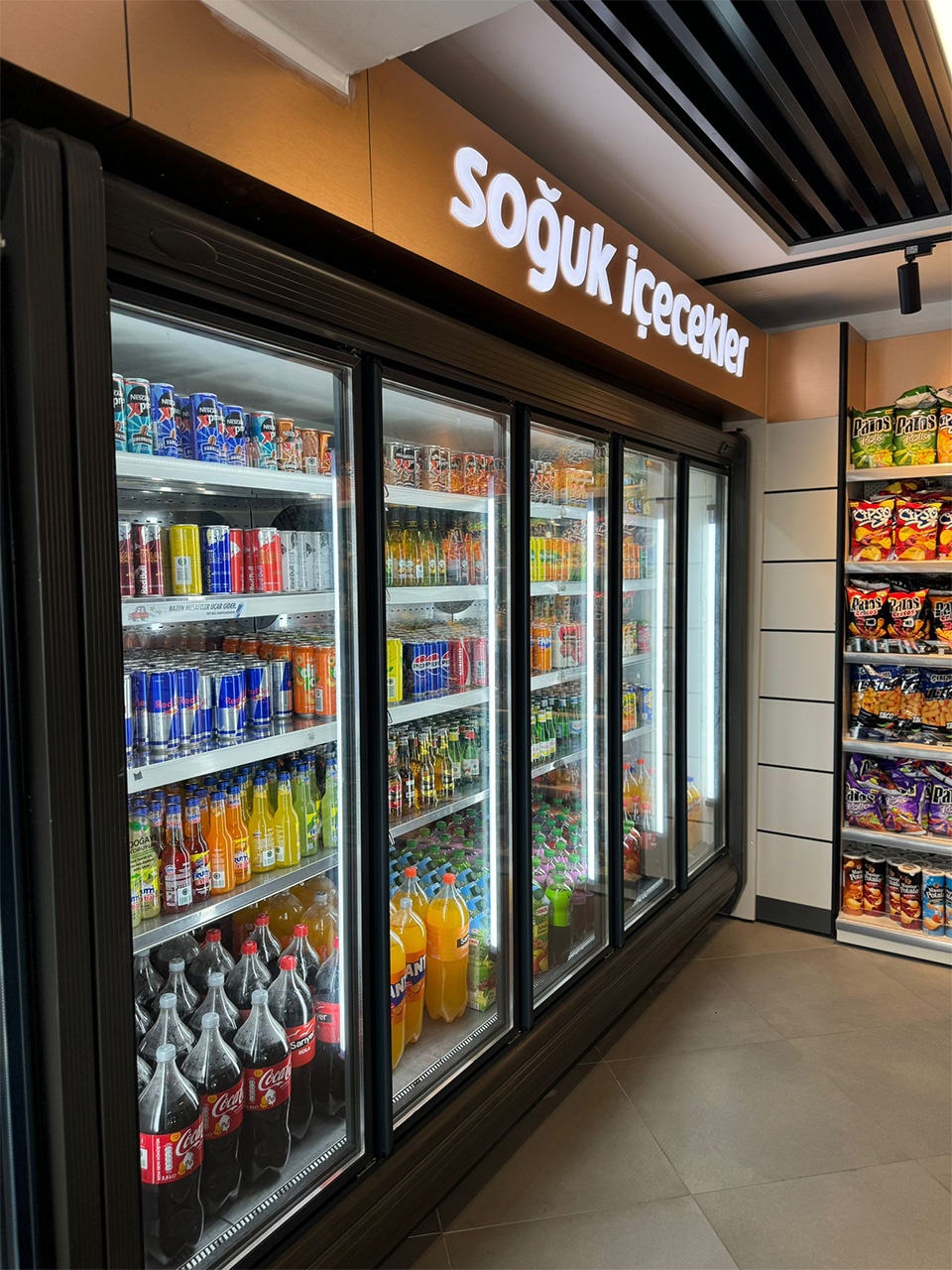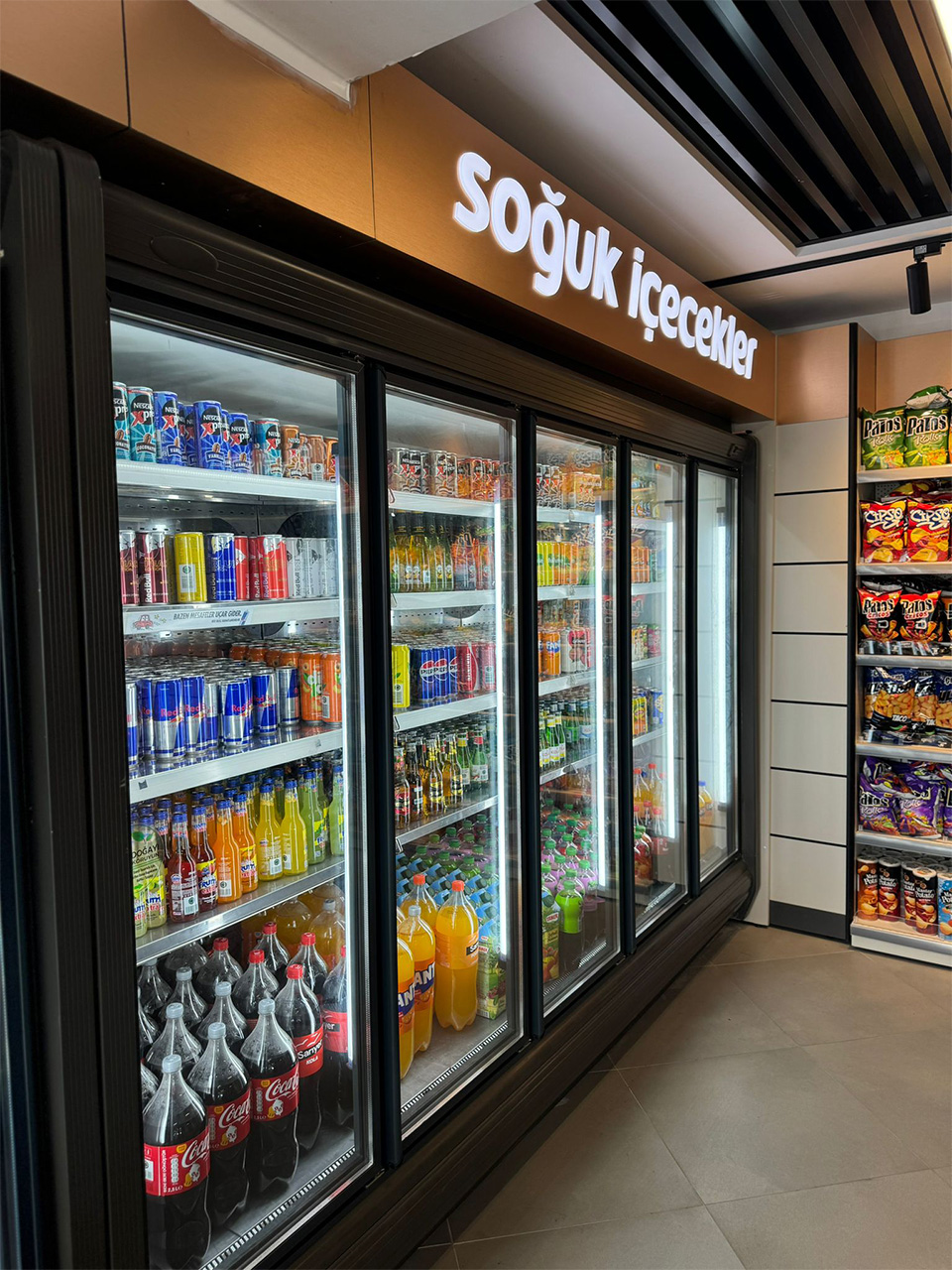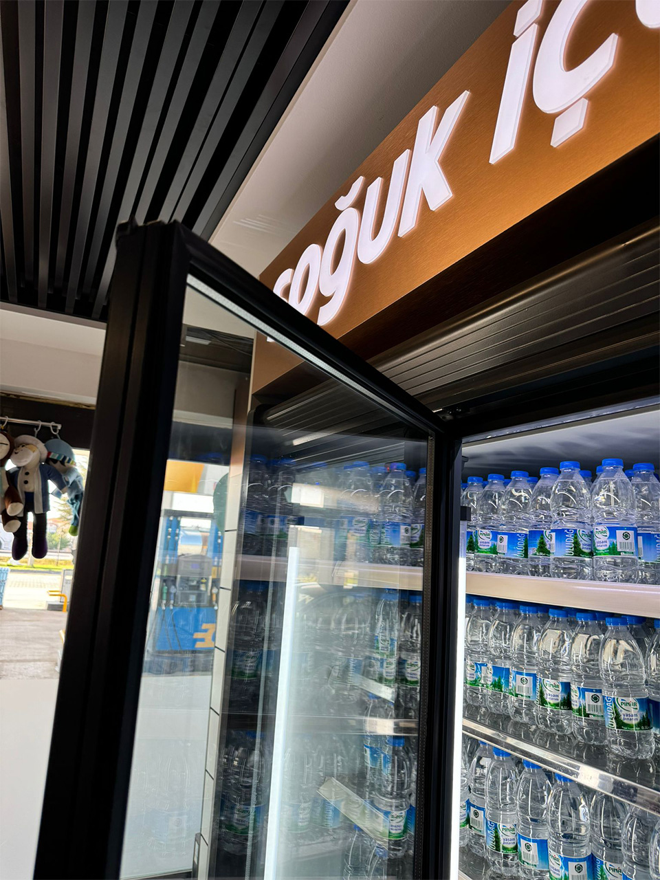T-tipi mıknatıslı contalar ve otomatik kapanma özelliği, enerji kayıplarını minimize ederken; rezistanslı alt profil, cam yüzeyde yoğuşmayı engelleyerek net bir görünüm ve hijyenik bir ortam oluşturur.